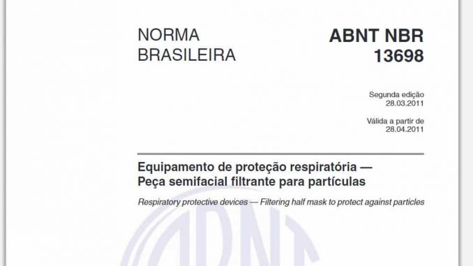 Esta Norma especifica os requisitos para as peças semifaciais filtrantes para as partículas utilizadas como equipamentos de proteção respiratória do tipo purificador de ar não motorizado.