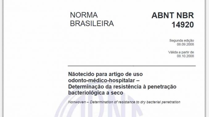 Esta Norma especifica o método para determinação da resistência à penetração bacteriológica a seco em nãotecidos utilizados em paramentação cirúrgica e correlatos.