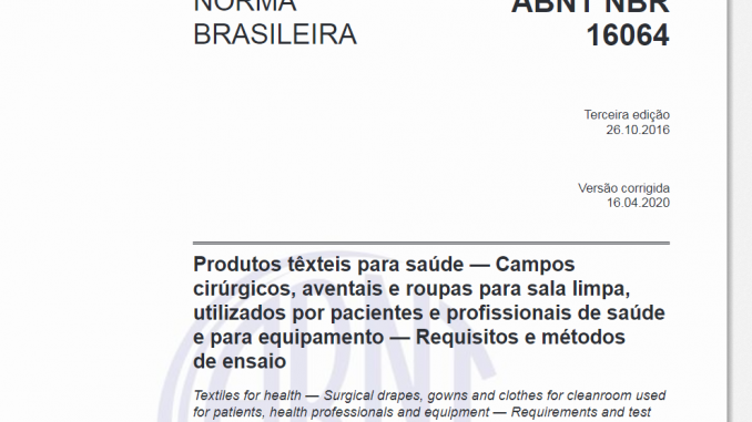 Produtos têxteis para saúde – Campos cirúrgicos, aventais e roupas para sala limpa, utilizados por pacientes e profissionais de saúde e para equipamento – Requisitos e métodos de ensaio