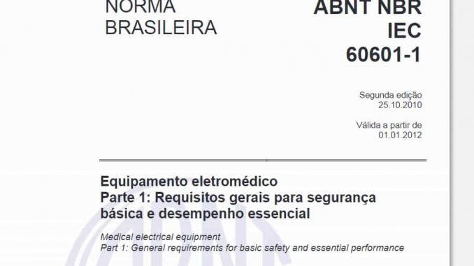 Nota de Título : Esta Norma deve ser utilizada em conjunto com ABNT NBR IEC 60601-1:2010 Emenda 1:2016 (continue lendo e baixar). Esta Norma norma necessita impressão colorida. Esta Norma foi confirmada em virtude da publicação da Emenda 1 de 06.05.2016