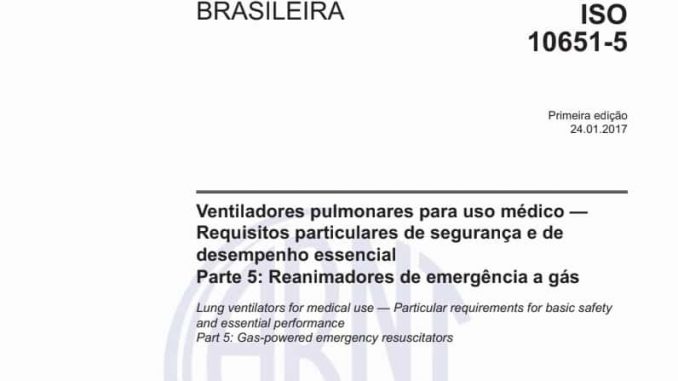 Título Inglês: Lung ventilators for medical use — Particular requirements for basic safety and essential performance Part 5: Gas-powered emergency resuscitators