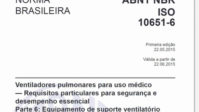 Ventiladores pulmonares para uso médico — Requisitos particulares para segurança e desempenho essencial (Parte 6: Equipamento de suporte ventilatório para uso domiciliar)