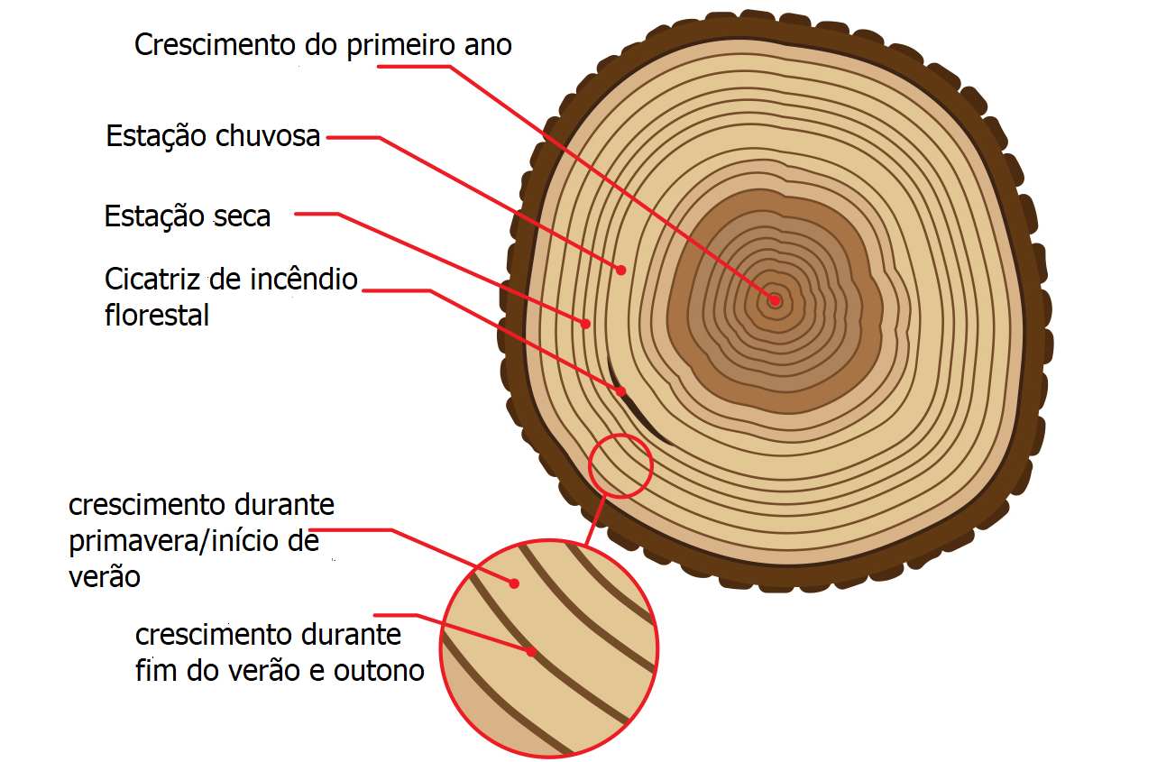 As árvores podem viver centenas e às vezes até milhares de anos. Ao longo desta longa vida, uma árvore pode experimentar uma variedade de condições ambientais: anos úmidos, anos secos, anos frios, anos quentes, geadas precoces, incêndios florestais e muito mais.