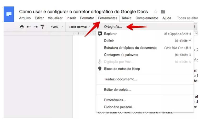 - Passo a passo para configurar o corretor ortográfico do Google Docs?