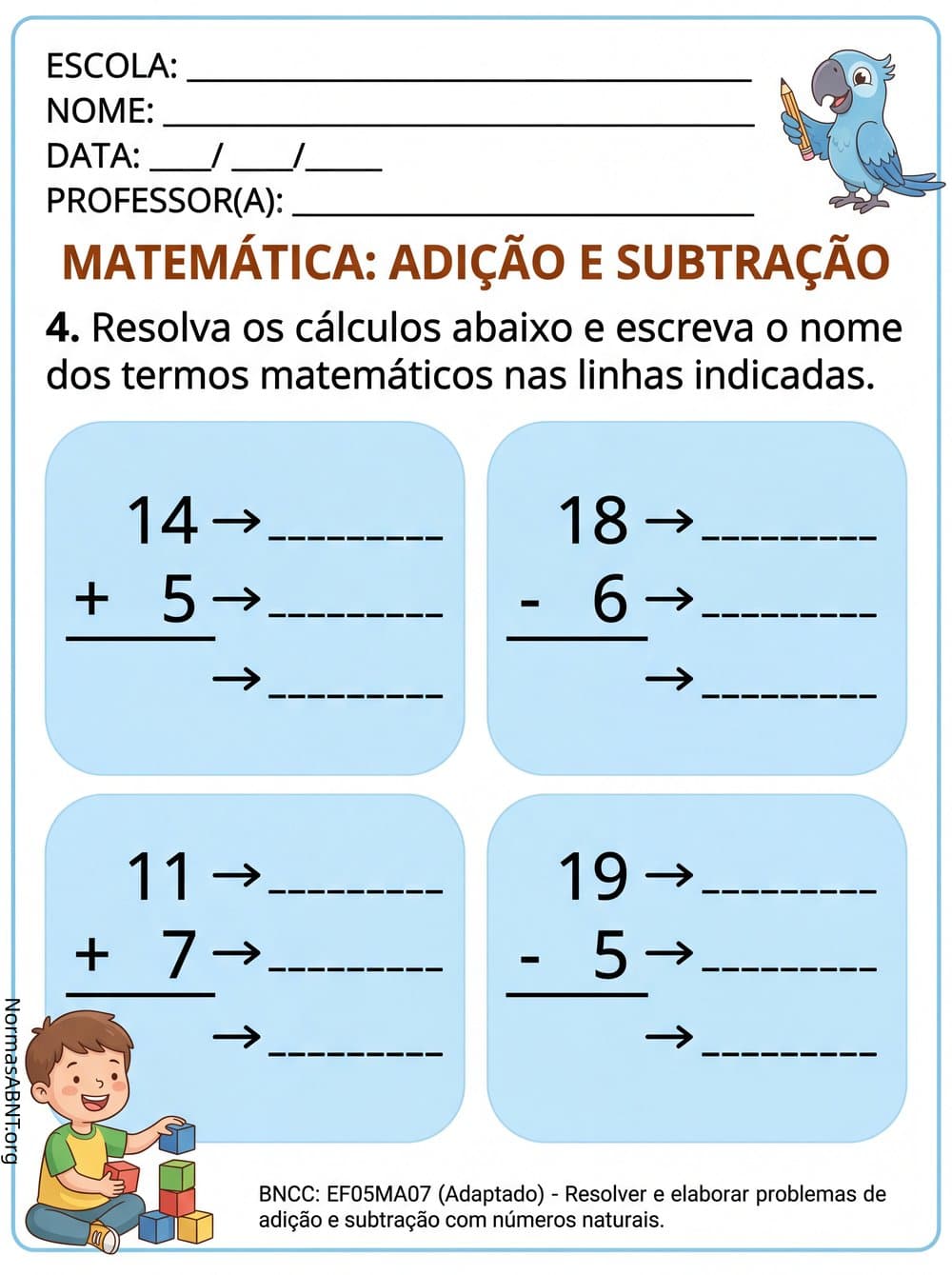 Matemática de 5º ano EF, resolver e elaborar problemas de adição, subtração com números naturais.