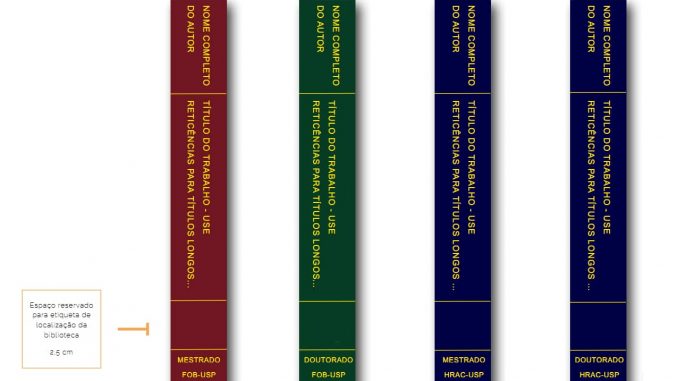Por exemplo, na USP – Universidade de São Paulo, considerada umas melhores do Mundo e a melhor do Brasil exige que seus trabalhos acadêmicos apresentem lombada como na Figura 4.