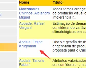 - Agora, depois de achar o TCC lhe interesse, favor clique no nome e entrar na página de detalhe desse TCC