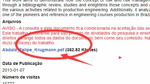 - Navegue para final da página e clique para baixar. Vale a pena ressaltar que o TCC pronto é somente para uso privado de atividades de pesquisa e ensino.