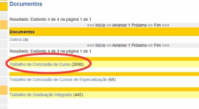 - Nesta página pode filtrar o TCC que quiser. Pode colocar palavra-chave que quiser, ou pode colocar a área que está trabalhando.