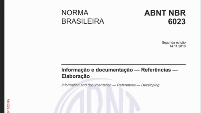Em 14 de novembro de 2018 foi divulgada uma atualização nas normas da ABNT, na NBR 6023, a parte das referências do trabalho. Houveram diversas inclusões e alterações na norma, entre elas está a inclusão de modelos de referência para: