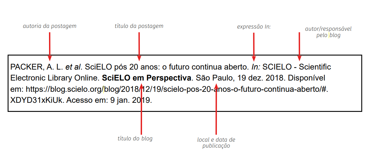 Para facilitar o entendimento, separamos um exemplo de como fazer referência de blog na sua pesquisa científica. Veja a seguir: