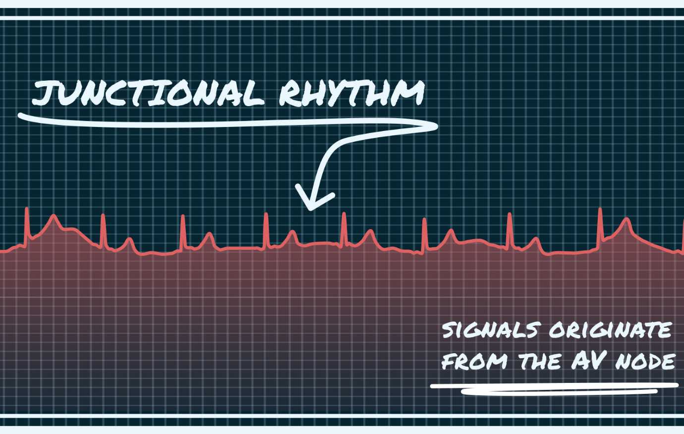 O ritmo juncional descreve uma falha de poste de coração, onde a atividade elétrica que inicia a contração muscular cardíaca começa na região errada. O ritmo cardíaco é o resultado de impulsos elétricos enviados das células do marcapasso do nó sinoatrial (SAN) no topo do átrio direito. Se a SAN não disparar, uma área localizada no ponto de encontro dos átrios e ventrículos (junção atrioventricular) assume o papel de marcapasso, causando ritmo juncional.